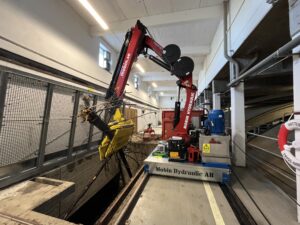 The crane's extension makes it possible to deep clean along the entire length of the gate.